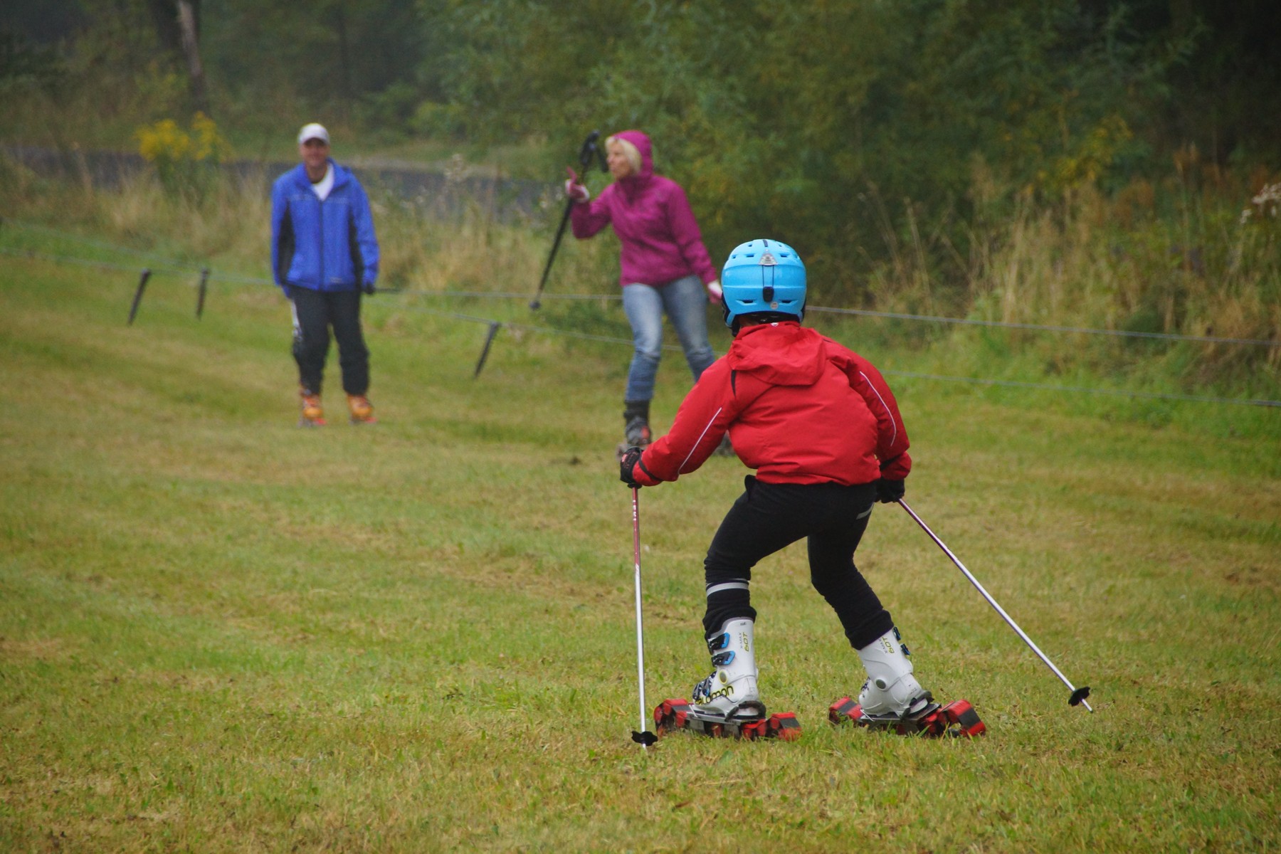 17.September 2016, 20°C, wolkig mit mäßiger Fernsicht und die Kinder des Ski Club Hanau schnallen sich die Ski an. Der Eberhardt-Rother-Lift läuft und die Kids bevölkern den frisch gemähten Übungshang. Der Ski-Club-Hanau feierte 50 Jahre Skilift Simmelsberg in Gersfeld / Rhön mit buntem Programm. Zum Auftakt wurde Grasski gefahren.